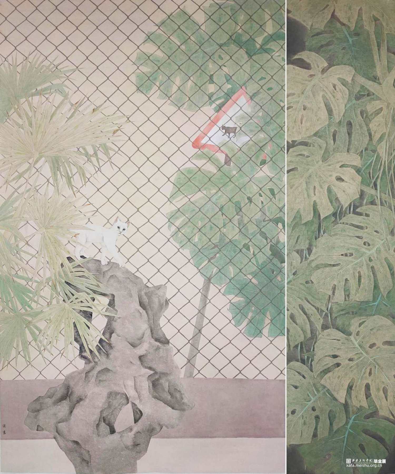 《谧静影望》描绘了夏日安静而静谧的傍晚,没有外物打扰的时空之中,一道身影伫立在高处盼望着,等待着的故事内容,通过托物言志,借景抒情的手法,其意在表达作者自己的思念之情,思念好友,思念亲人等情感表达。当下人们在飞速发展的时代,彼此的关心与问候不光是手机电话或微信,心底的关心,思念之情,更是人们本质的情感表达。画面中整体偏向暖色调的处理方式也让画面氛围感更亲近。视觉中白猫和警示牌在画面中格外突出。也代表着作者和思念之人的遥相呼应,相互关心与盼望等待的情绪。使得画面充满安静,静谧,期盼之感。