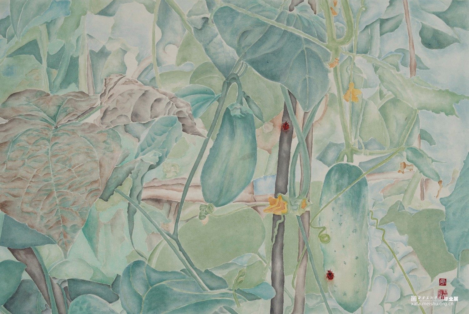 忆往昔,扑蝴蝶,捉漂虫,玩泥巴,拔菜苗乐此不疲,童年在岁月的长河中悄悄溜走,儿时的记忆里小小的菜园陪伴了我整个童年,以致后来经常做梦梦到菜园的各种趣事。同时也给我们餐桌上增添了各种天然美味佳肴。长大后,妈妈的菜园是想回却难回到的渴望,毕业创作给予我表达情感的一个机会,借此用墨骨的手法表现菜园带给我美好得回忆,童年是最美的礼物,一个美丽又充满魔幻的给人惊喜的地方。