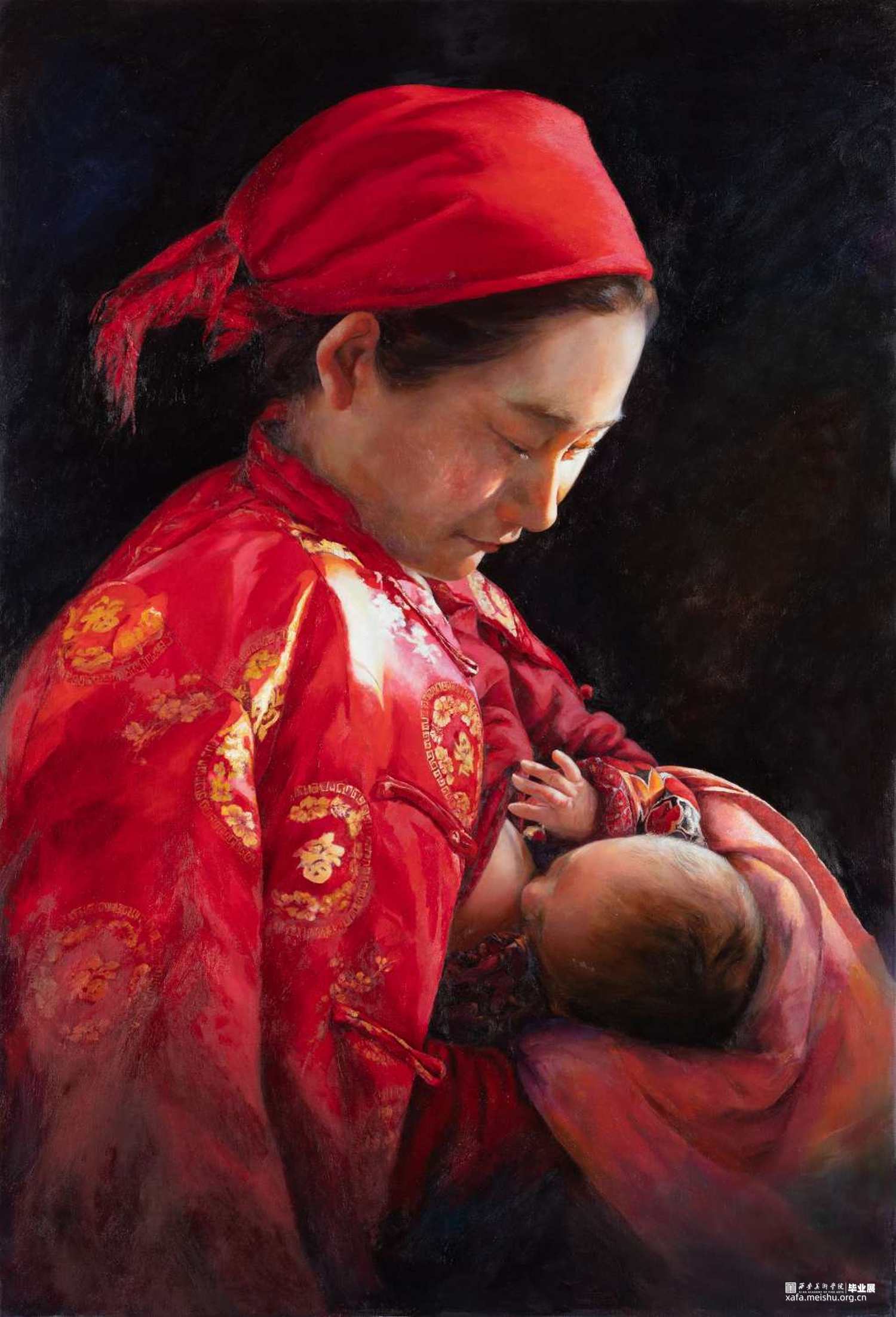 2020年有幸来到西安美院研修油画,在学校浓厚的艺术氛围和良好的教学环境下,得以创作这幅油画《哺》