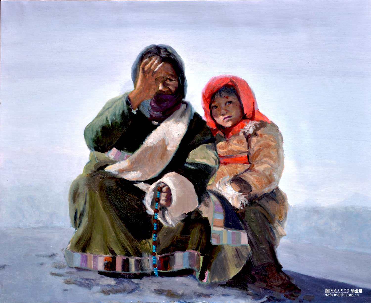 时光荏茬如白驹过隙,转眼已是两年,回忆着这两年在学校的点点滴滴, 感觉自己过的尤为充实。和西美相处的这些日子有太多的喜悦和放松,但现在更多的却是心酸与不舍。眨眼的功夫就该准备毕业创作了。为了能给学校和自己交一份满意的答卷我苦心孤诣。搜集图片,画草图,安排画面的布局以及研究画面人物色彩的搭配。希望能把在这里学到的都展现在画面上,我的作品名字叫《守望》,主要以普普通的藏族家庭场景为题材,画面描绘了一位慈祥的老奶奶和她心爱的小孙子,她们之间相互依赖,相互照顾,相守相伴的这样的画面。我想通过这寂寥而又冷清的画面表现老奶奶守护她生命里最重要的人。守护着过去珍贵的事物和难忘的回忆。同时瞭望着远方所期盼许久未归的人,以及对未来生活美好的憧憬。