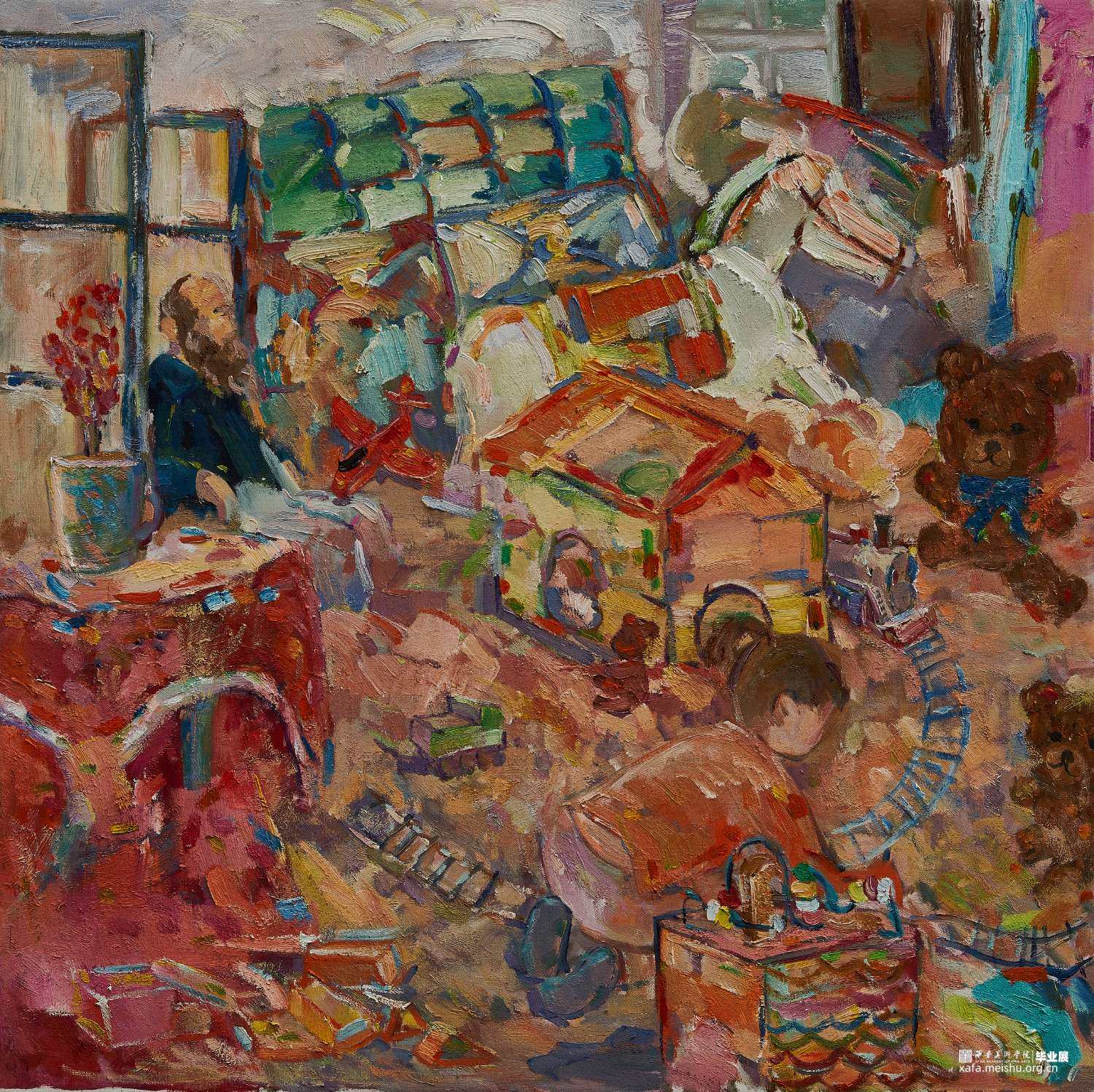 在我的这幅作品里描绘了我童年的记忆,小时候在外公家外公陪我玩耍的场景。这副画里用抽象的画法描绘出的童年里现在想起来朦胧充满欢笑的乐土,童年里那酸酸甜甜的味道,童年里那天马行空的想法及弥足珍贵的亲情,和那些最美好的假期在外婆外公家的回忆将永远镌刻在我的童年故事里。幸运的人,一生都被童年治愈,我可以骄傲的说我很幸运,我拥有一个花一般的童年,纵使岁月的时光不停流淌,但童年的记忆是永恒的……