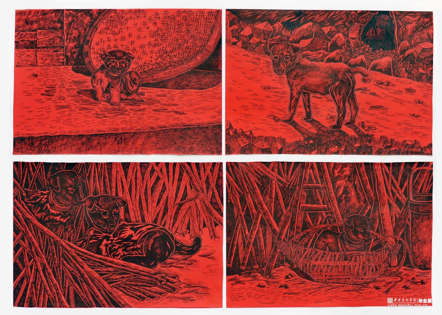 这学期我们去了被称为“东方普罗旺斯”的鲍旗寨写生,蓝天白云从不远处起伏的秦岭山峰上向下浦沿,色彩斑斓的丘林地形,跌宕蜿蜒起伏,其优美的景色在陕西关中演绎着独特的魅力。一开始我的创作想法和现在的不一样,是在写生的时候画了几幅黑白形式的画才有了现在的想法。