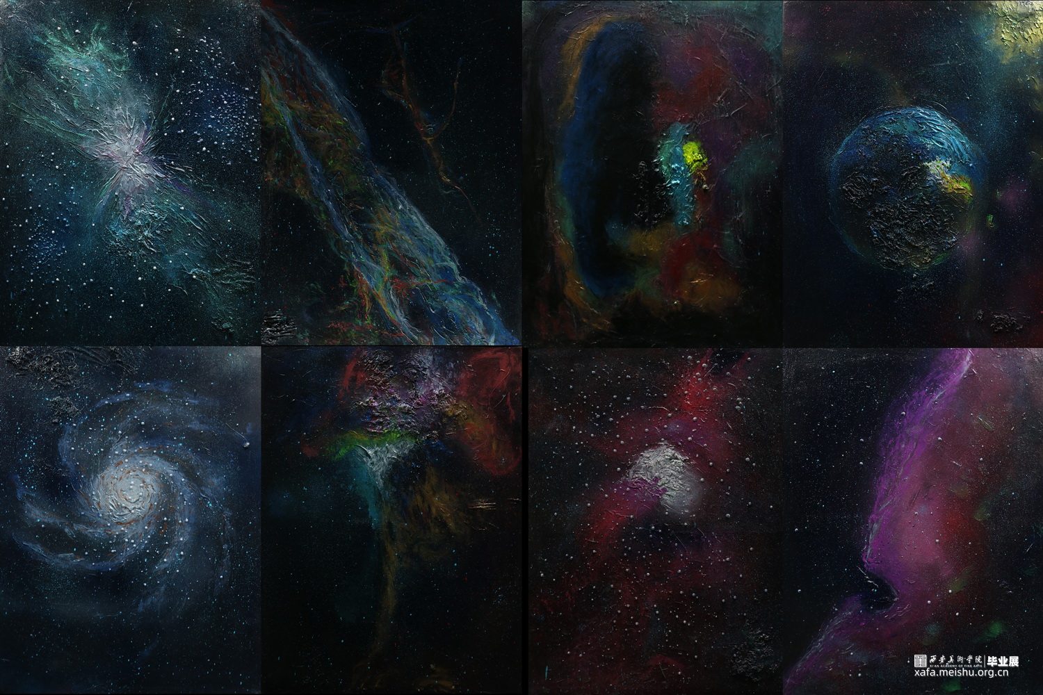 《恒》,星体在诞生前和爆炸后,分子悬浮在宇宙中的形态被统称为星云。星云是生与死的中界点,作者以NASA发布的八幅不同星座的星云形态为原型,通过不断的分解反复重组,最终得到八幅星云图,星云的存在是宇宙中分子的存在,是永恒的。