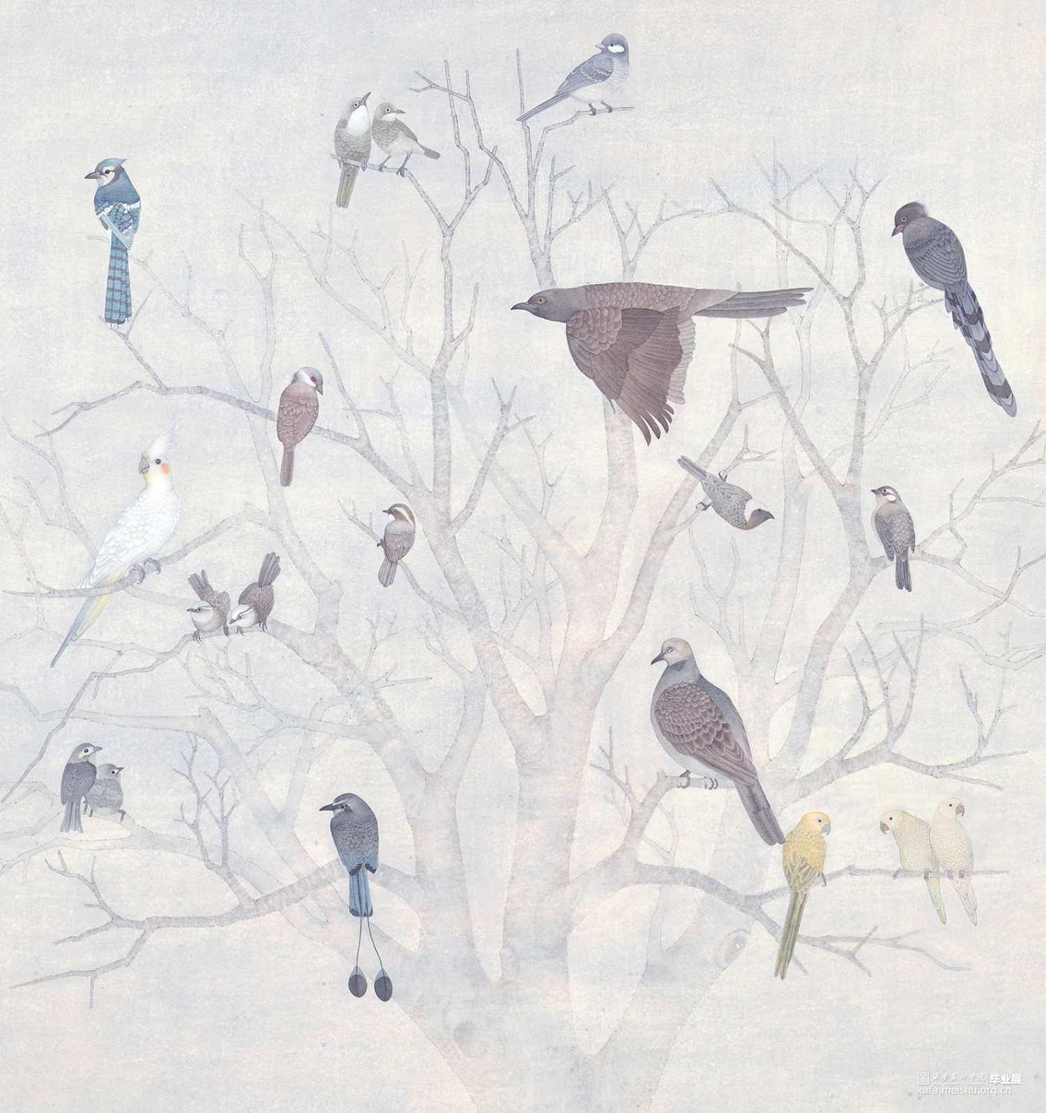 大自然中,鸟语花香。工笔花鸟用它独特的艺术语言,向我们传递着大自然的美。作品通过白描勾勒,背景烘托,着墨染色来表现画面,想要传递出一种静谧和谐之美。
