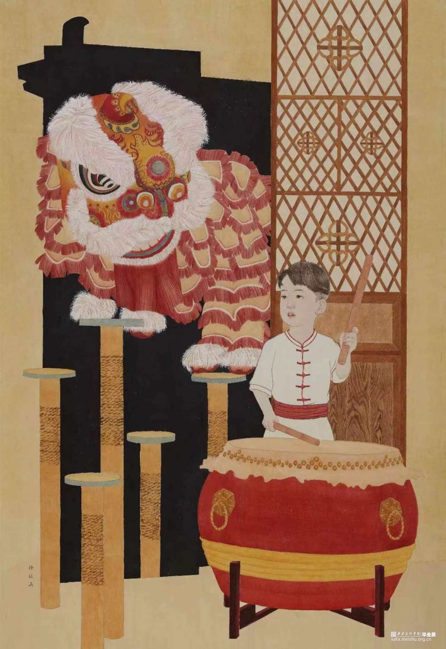 中国优秀传统文化是中华民族的精神命脉,是涵养社会核心价值观的重要源泉,更是我们在世界文化激荡中站稳脚跟的坚实根基。《薪火.相传》作为我的毕业创作,这幅画中的内容我想表达的是一种中华民族的精神形态和美好意愿。艺术本就是时代的一盏灯火,是新时代的见证。青少年是祖国的未来、民族的希望。