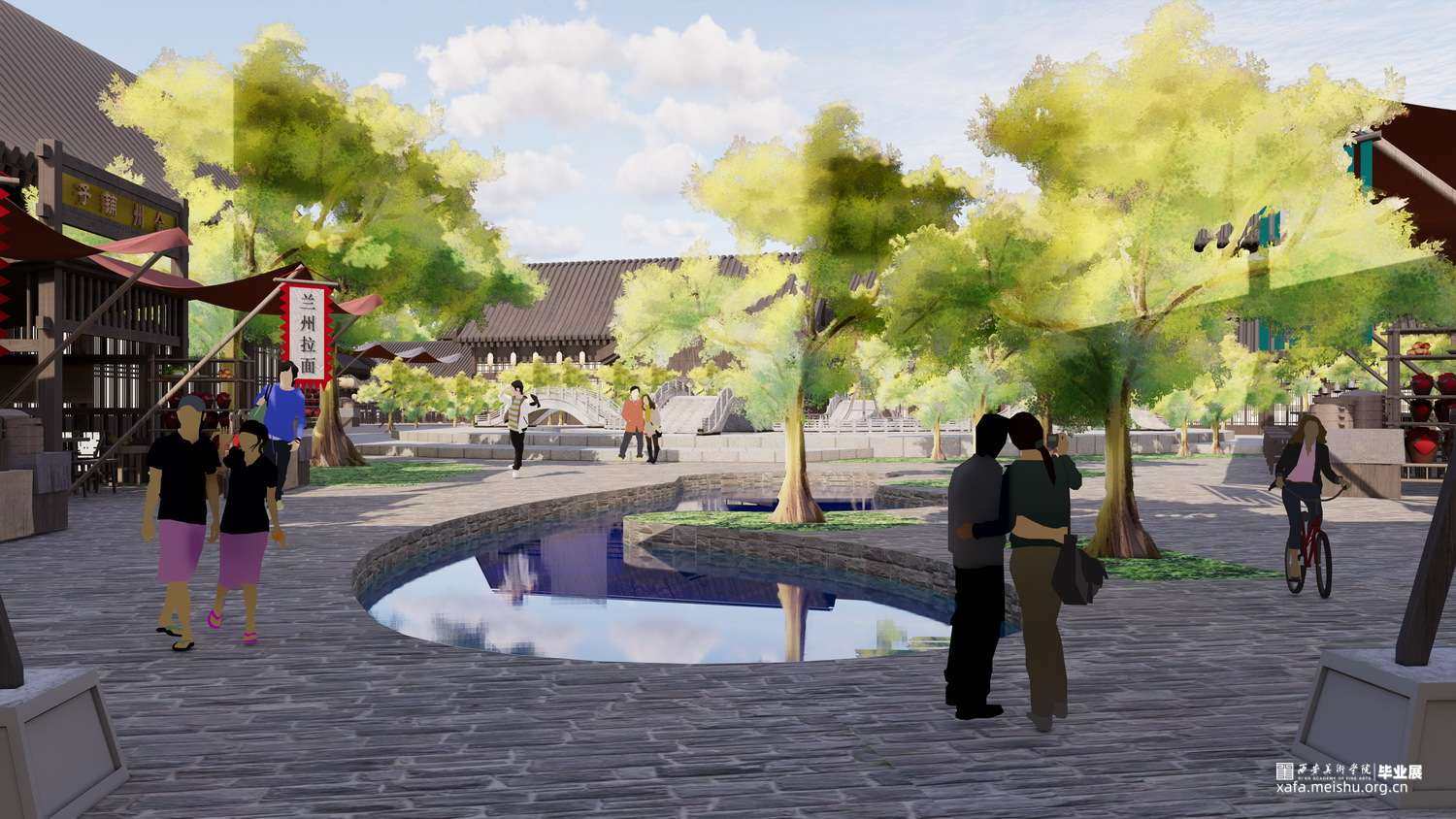 设计构思:对兰州的了解,历史,地狱文化,华流才是顶流,建造文化自信,创造大美中国,城市快速发展的需求就是要高质量发展,越是地方就越是中国。以兰州古城建筑风格为新貌,以兰州人的一天作为富有烟火气十足,作为一个旅游打卡地。通过早中晚老青幼三个年龄段的活动去做一个综合体。